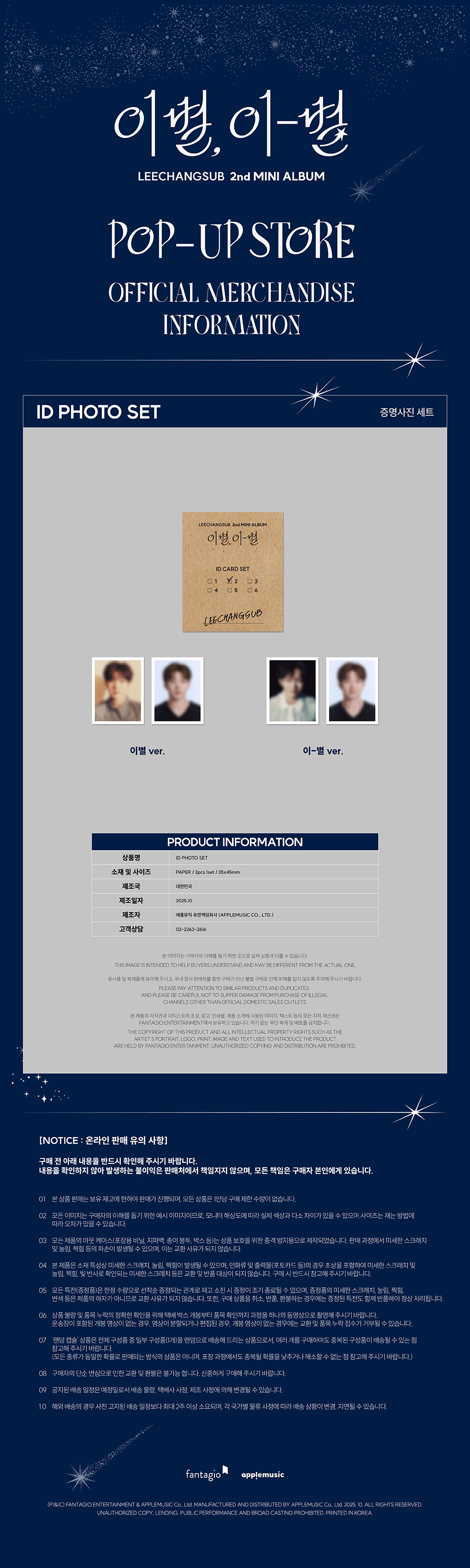 - 이창섭 (LEECHANGSUB) 2nd MINI ALBUM POP-UP MD / 증명사진 세트 (ID PHOTO SET)
