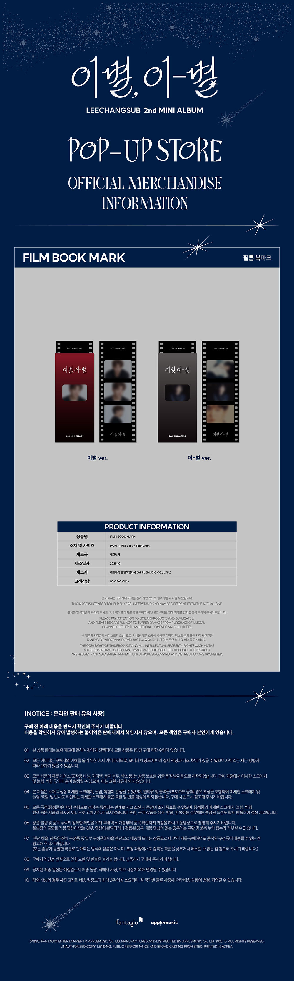 - 이창섭 (LEECHANGSUB) 2nd MINI ALBUM POP-UP MD / 필름 북마크 (FILM BOOK MARK)
