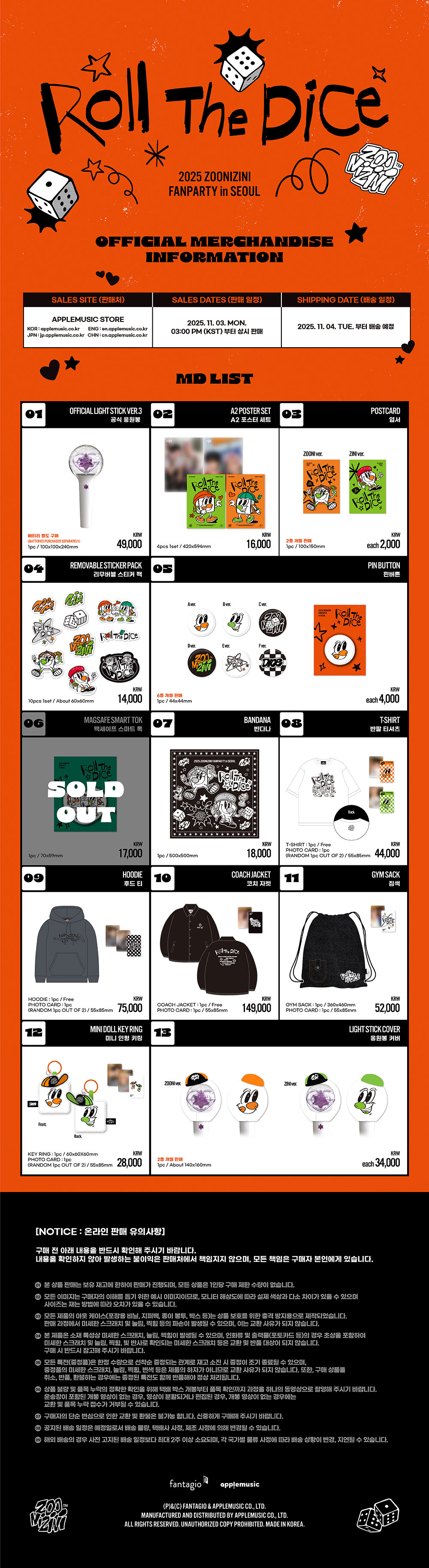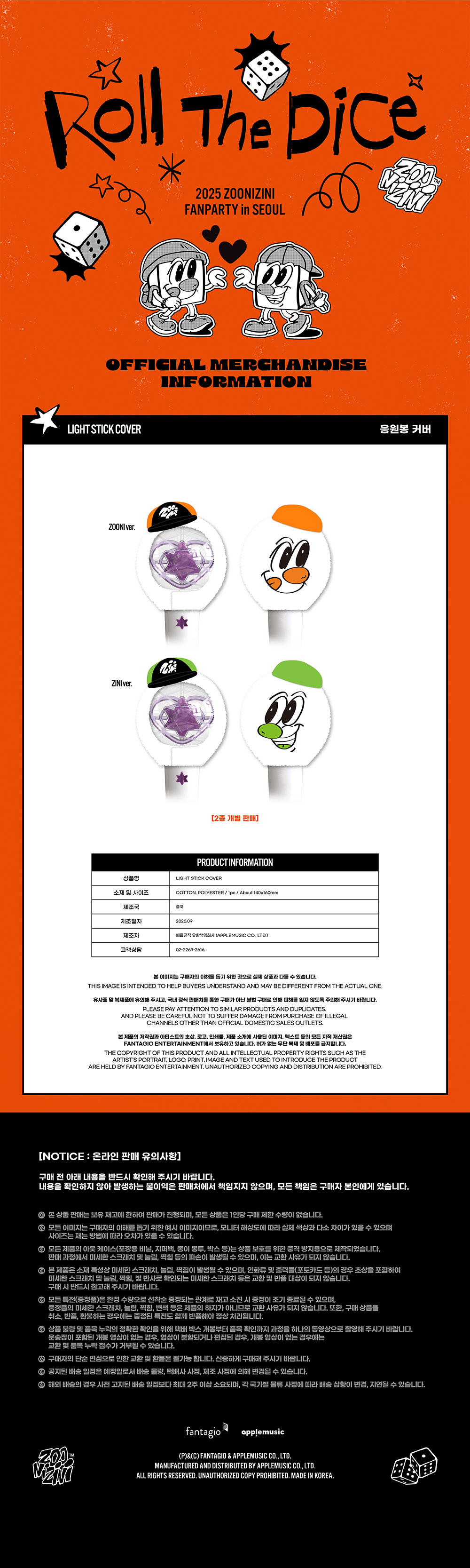 - 주니지니(ASTRO) 2025 ZOONIZINI FANPARTY [Roll The Dice] MD / 응원봉 커버 (LIGHT STICK COVER)