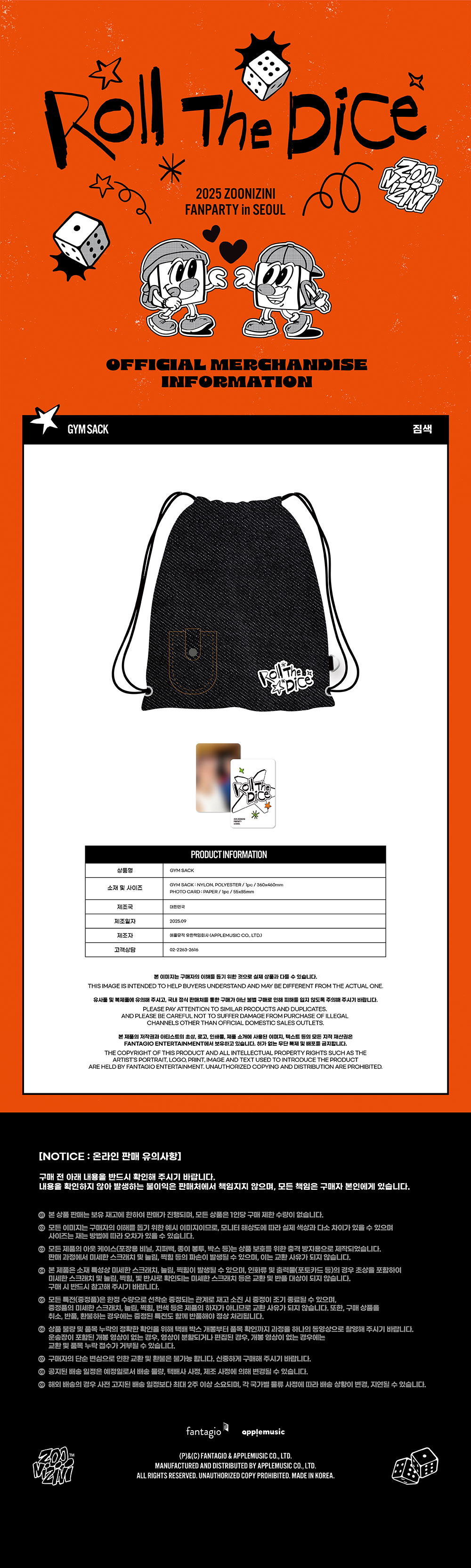- 주니지니(ASTRO) 2025 ZOONIZINI FANPARTY [Roll The Dice] MD / 짐색 (GYM SACK)RING)