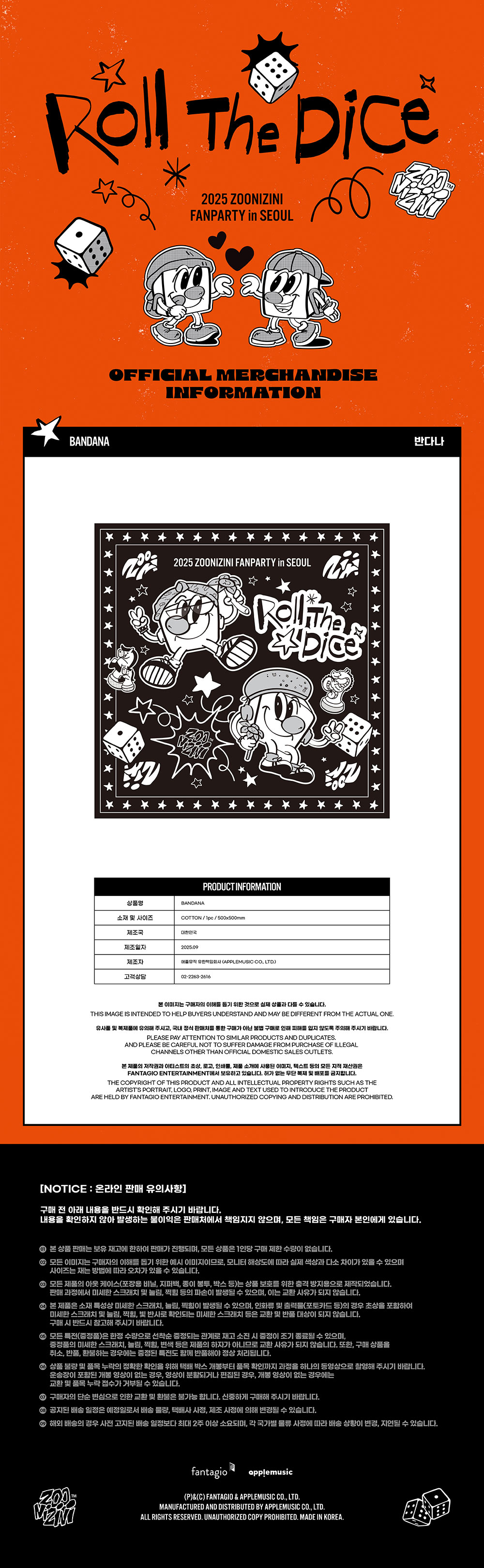 - 주니지니(ASTRO) 2025 ZOONIZINI FANPARTY [Roll The Dice] MD / 반다나 (BANDANA)