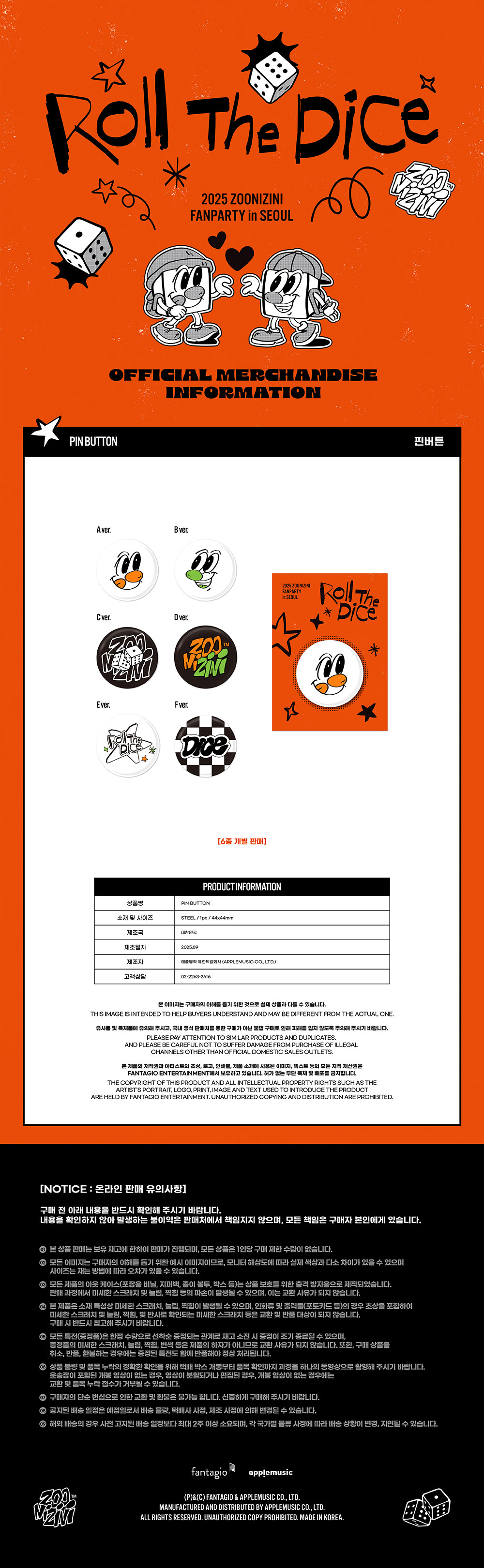 - 주니지니(ASTRO) 2025 ZOONIZINI FANPARTY [Roll The Dice] MD / 핀버튼 (PIN BUTTON)