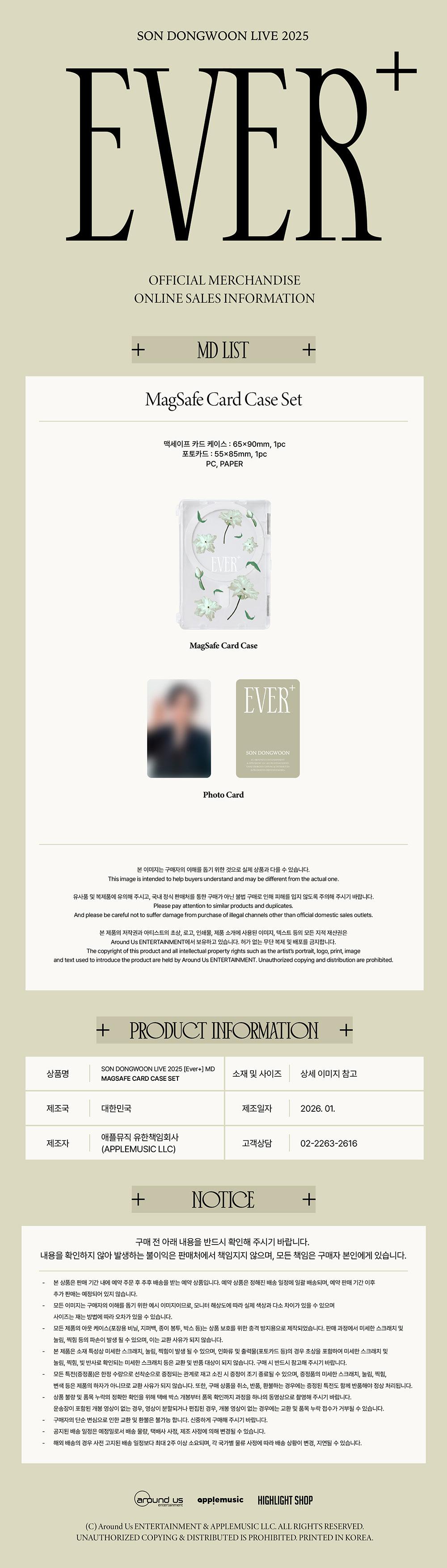 - 손동운 (SON DONGWOON) 2025 SOLO CONCERT OFFICIAL MD / 맥세이프 카드 케이스 세트 (MAGSAFE CARD CASE SET)