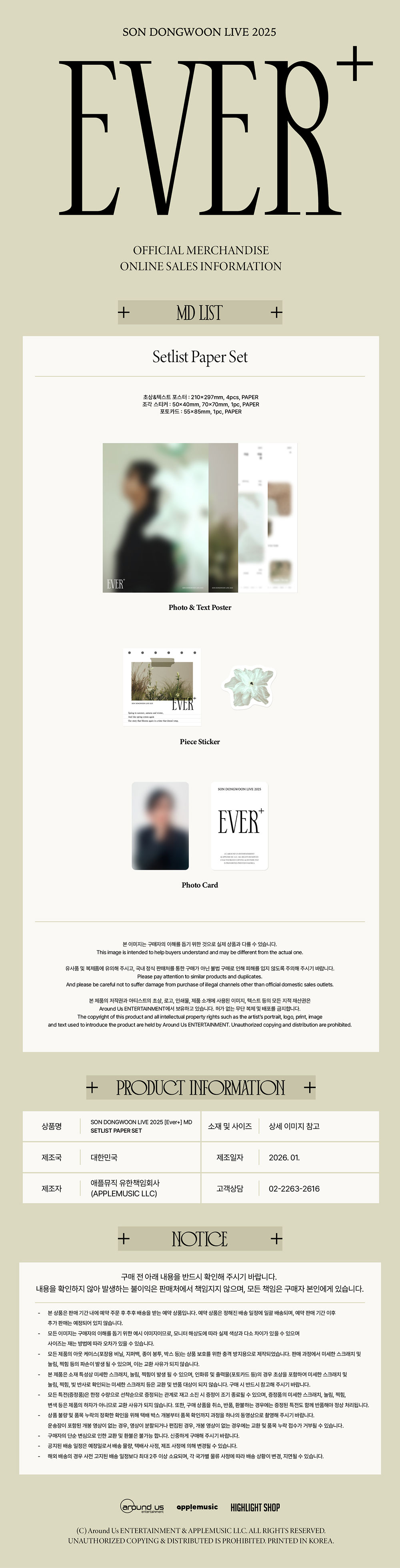 - 손동운 (SON DONGWOON) 2025 SOLO CONCERT OFFICIAL MD / 셋리스트 페이퍼 세트 (SETLIST PAPER SET)