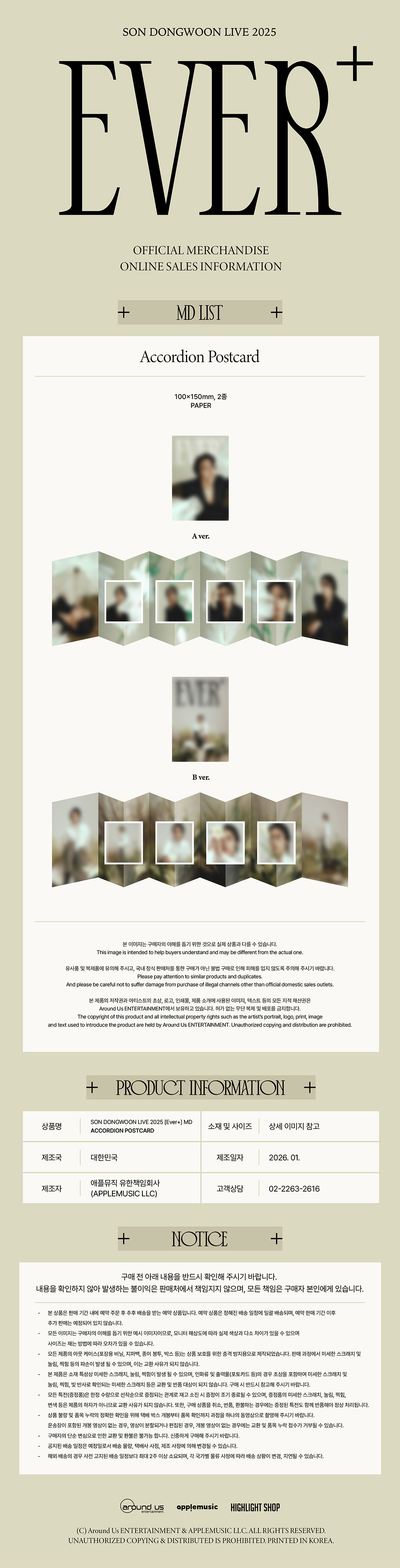 - 손동운 (SON DONGWOON) 2025 SOLO CONCERT OFFICIAL MD / 아코디언 엽서 (ACCORDION POSTCARD)