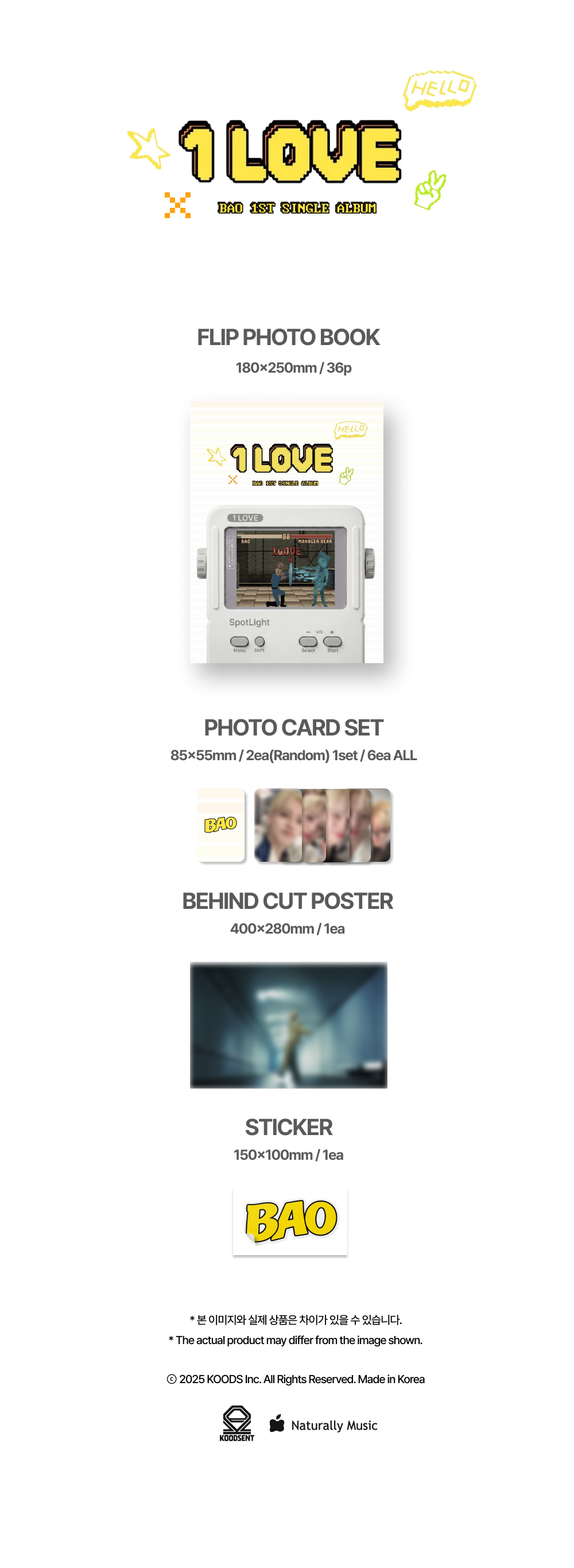BAO의 첫 번째 싱글 앨범 [1LOVE]는 사랑이라는 감정을 시작의 설렘과 확신의 순간으로 풀어낸 앨범이다.