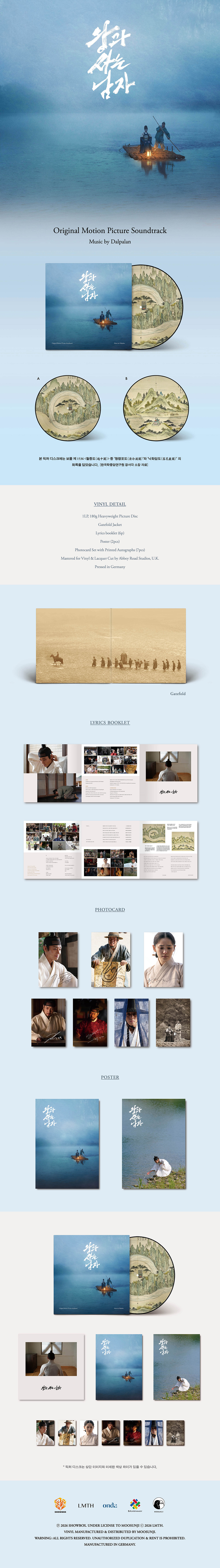 총 24곡이 수록된 1LP와 게이트폴드 재킷으로 구성된 이번 LP는 한국학중앙연구원 장서각이 소장한 단종 유배지 청령포의 실경을 담은 ‘월중도’ 화폭을 활용한 픽처 디스크로 제작되어 높은 소장 가치를 지닌다. 이와 더불어 미공개 스틸이 포함된 북클릿, 포스터, 사인 포토카드 등 다양한 인서트를 더해 완성도를 높였으며, LP 발매를 기념해 장항준 감독과 달파란 음악감독의 글이 북클릿에 수록되어 작품과 음악에 대한 깊이 있는 이야기를 전한다.