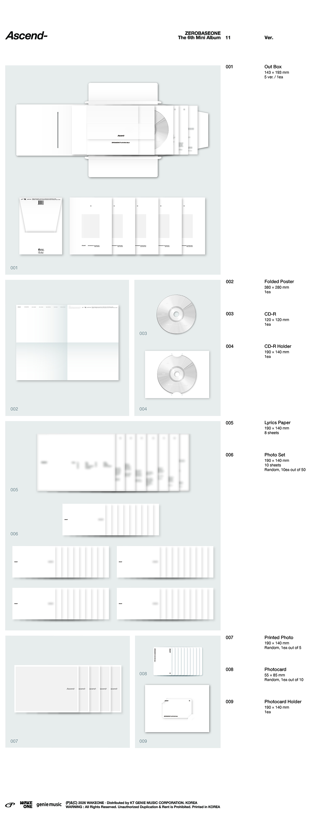 미니 6집 <Ascend->는 ZEROBASEONE의 현재를 가장 가까이에서 포착하는 동시에, 무한한 가능성을 지닌 이들의 새로운 여정을 미리 만나볼 수 있는 앨범이다.
